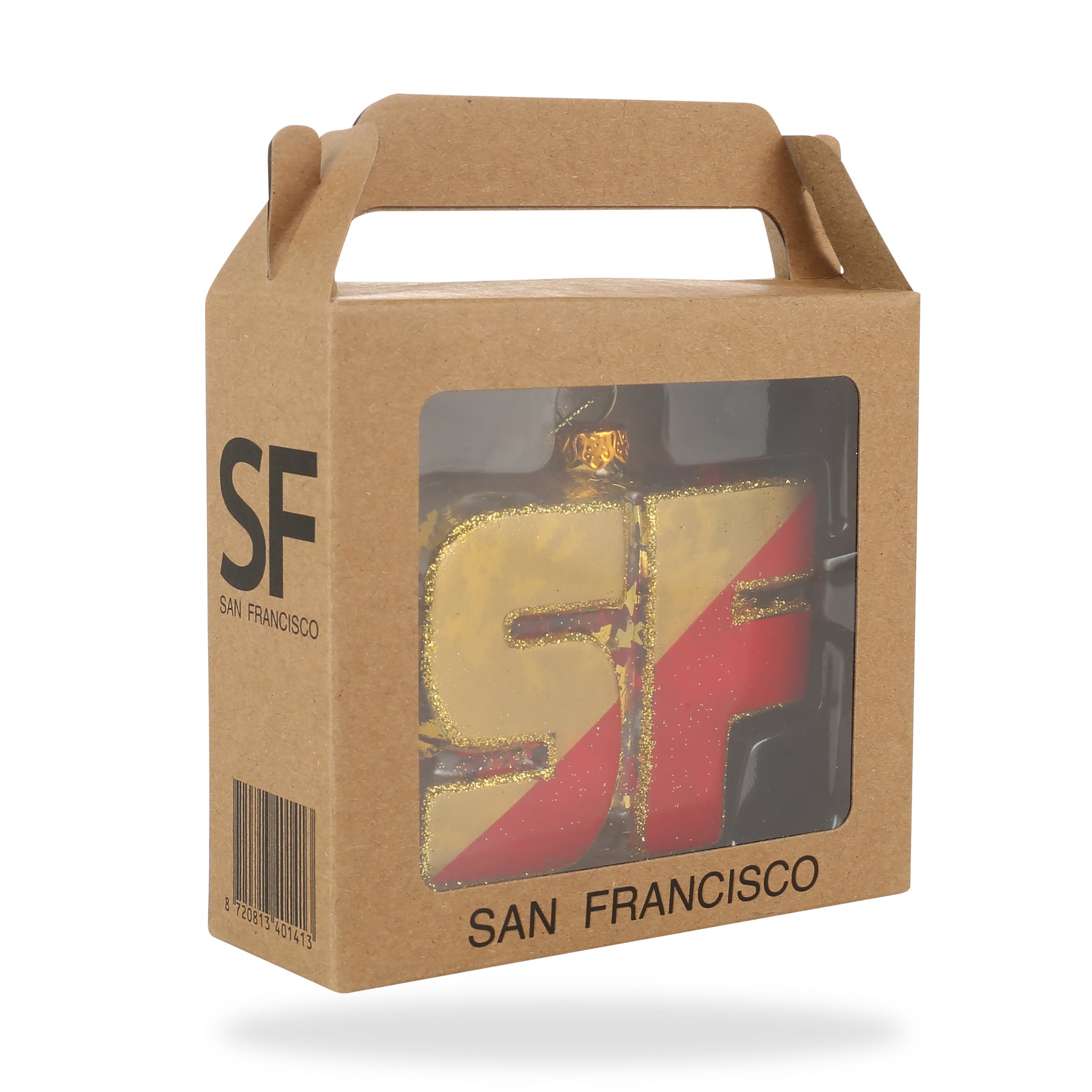 Show your pride for San Francisco with our bold Red & Gold SF Ornament, inspired by San Francisco's beloved red and gold team. This hand-painted ornament captures the festive energy of the city while paying homage to the team that unites the Bay Area. Crafted from high-quality glass and accented with glitter, it’s the perfect addition to your Christmas tree or a thoughtful gift for any San Francisco fan.